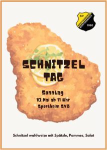 Am Sonntag 10. Mai 2026 (Muttertag) kann zu Hause die Küche kalt bleiben. Der SV Breitenberg/Martinsmoos serviert an diesem Tag ab 11 Uhr in seinem Sportheim leckere Schnitzelvariationen. Am Nachmittag gibt’s Kaffee und Kuchen und die übliche Sportplatzwurst. Ab 15 Uhr spielt die erste Mannschaft gegen die SGM Überberg/Ettmannsweiler/Aichelberg. Die Vereinsführung freut sich darauf, zahlreiche Gäste aus Nah und Fern begrüßen zu können.